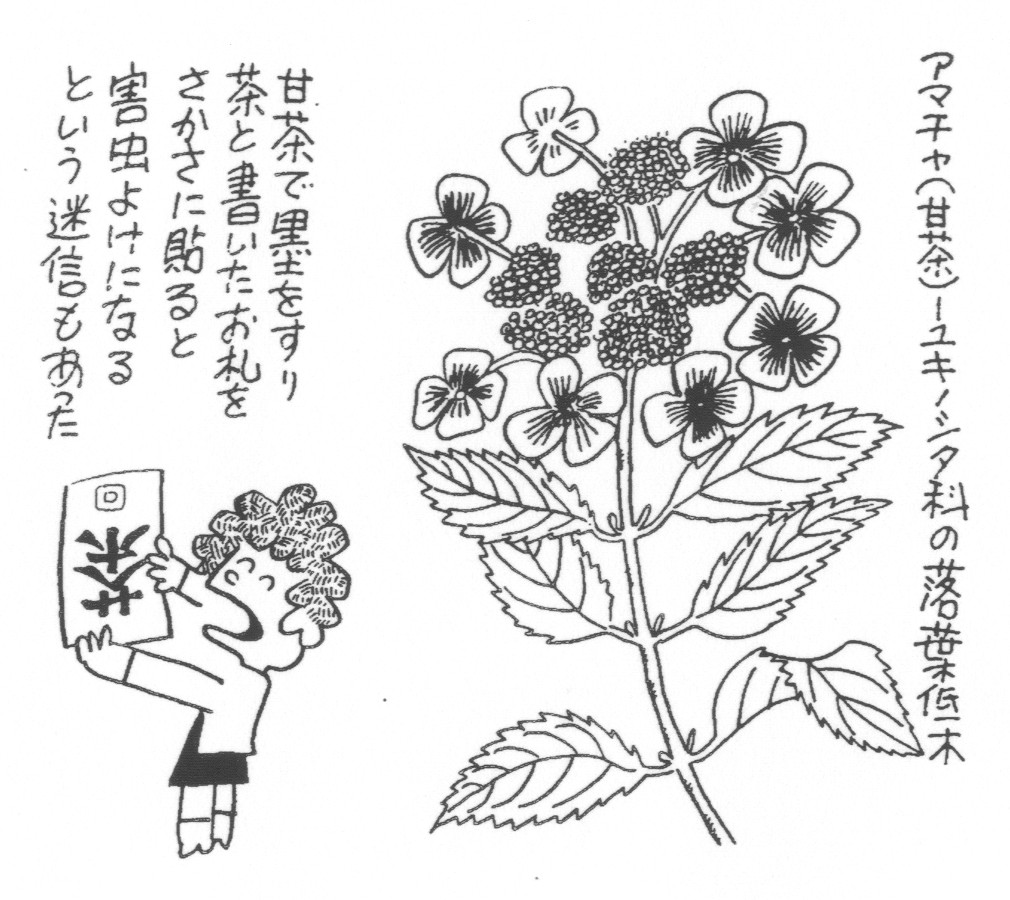 アマチャの木は醤油をつくる時にも利用され、糖尿病の人の飲みものにも使われているといいます。