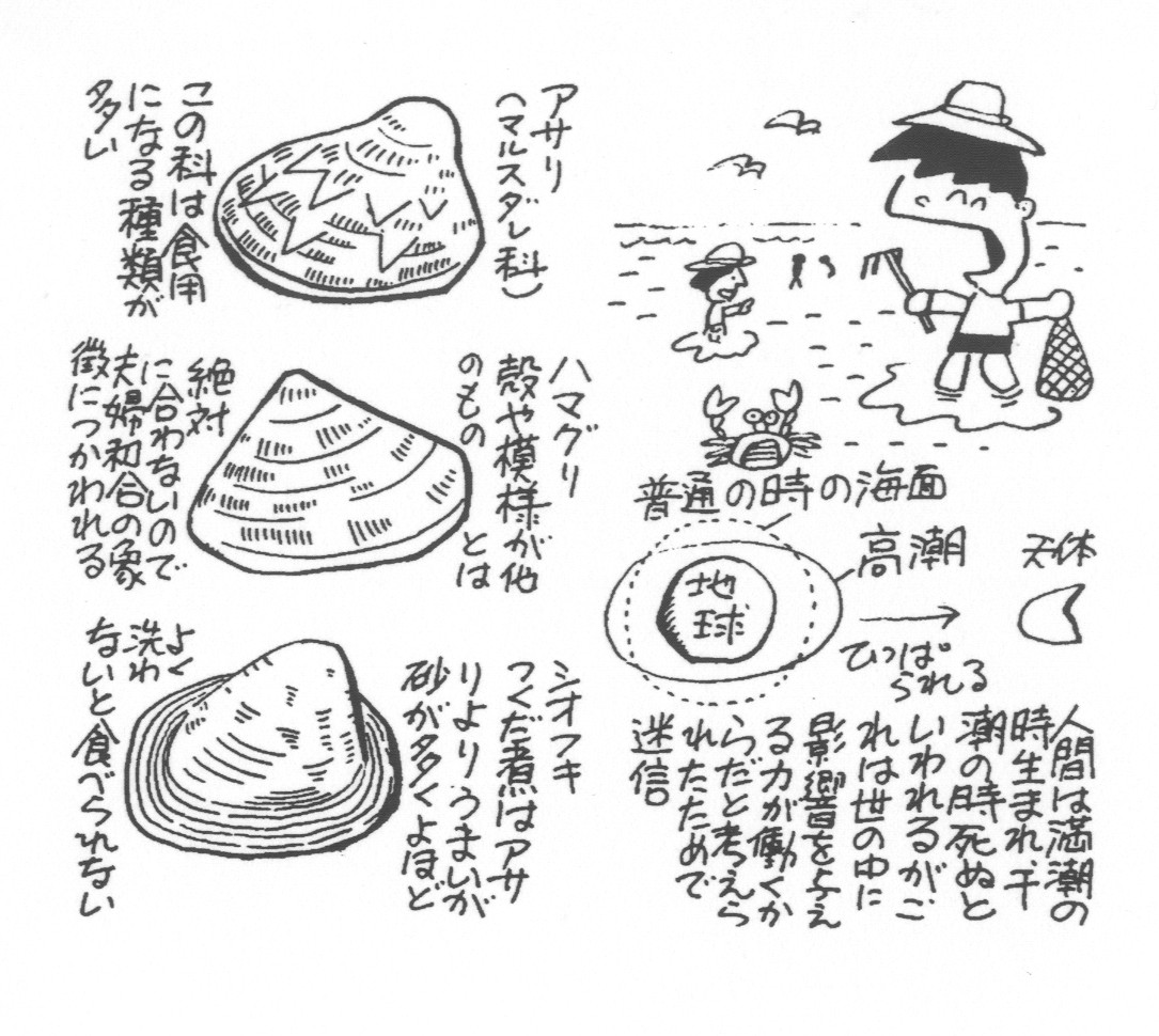 以前は、旧暦3月3日の日にはなぜか家にいてはいけないといういい伝えがあったそうです。この時期、大潮(3月3日から7日まで)といい一年中でいちばん満潮、ひき潮の差が大きく潮干狩にもってこいのこの時期です。