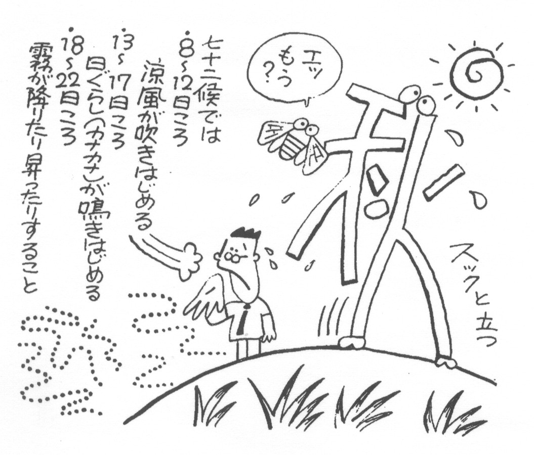 そこで1年を24に分け、それぞれの季節にふさわしい名をつけ農作業などの目やすにしたのが二十四節気。でも中国でつくられたこのやり方は日本の季節感とはだいぶ違い、そのまま暦に結びつけるのは無理なため、日本の気候に合うよう改良されています。