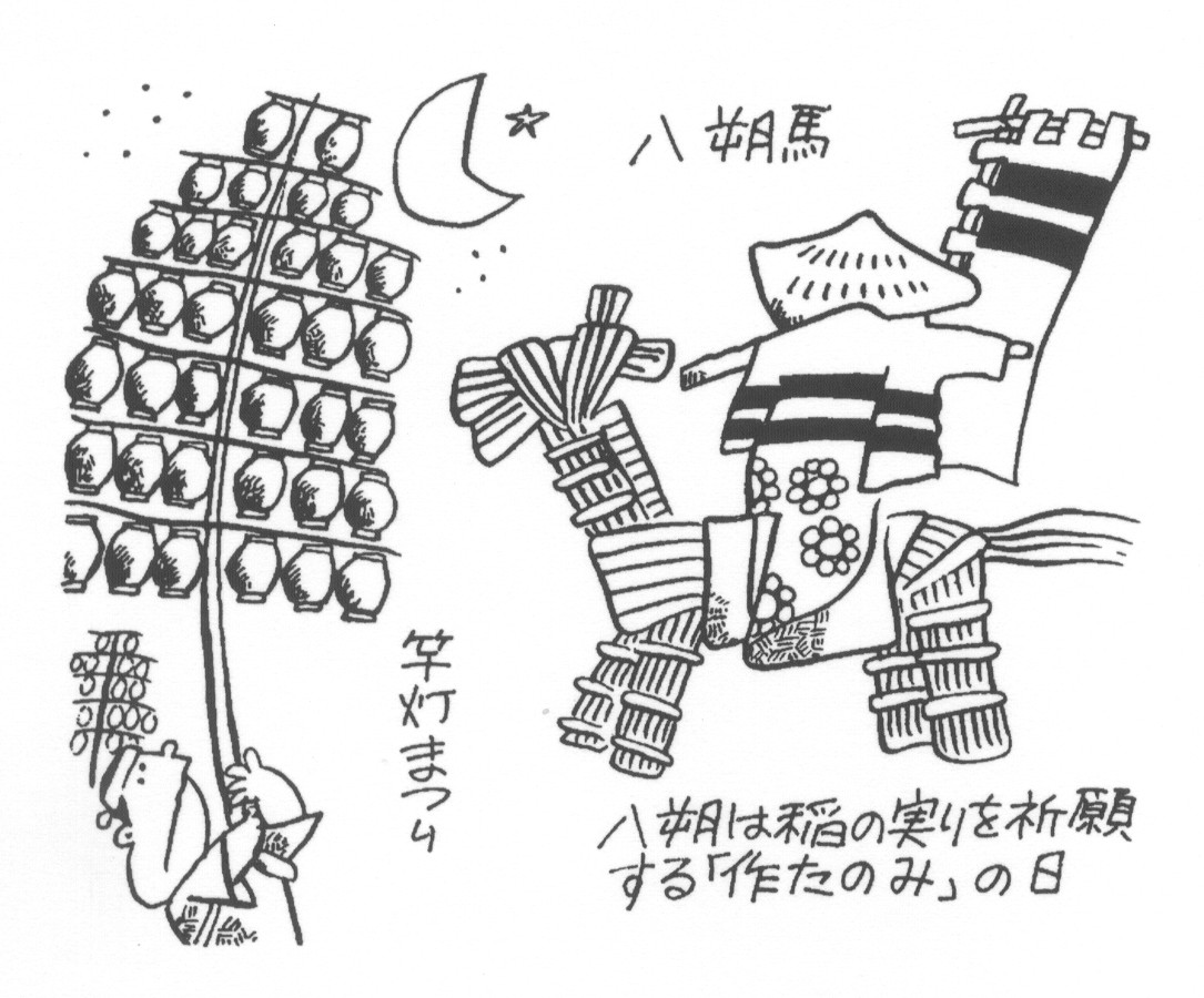 ▼八朔(はっさく)(1日) もとは旧暦の8月1日の行事で田の実節供(せっく)といい八朔人形やワラ人形などをつくり祝います。