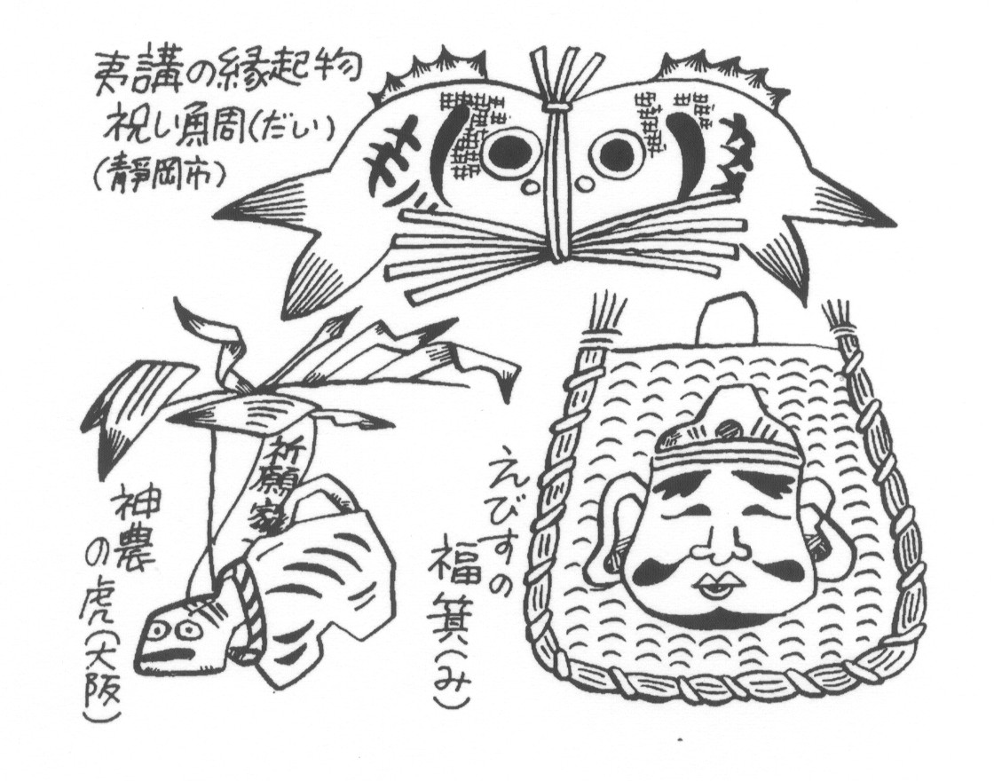 夷講は恵美須講とも書き、エビス髪のお祭り。同じ商売をしている人とか、同じ地域の人たちがエビス神をまつる団体をつくり、講の宿に集まり商売繁盛を祈りながら飲んだり食べたりします。