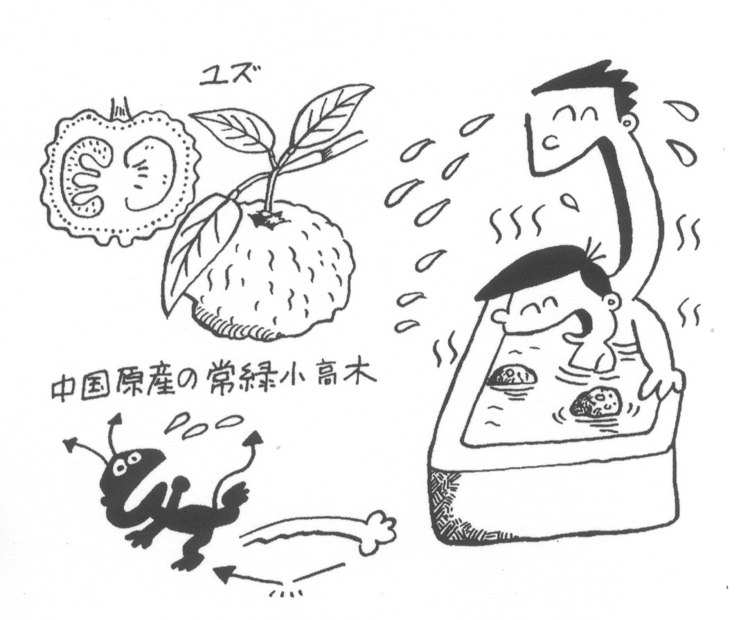 冬至(22日ころ)にはユズ湯に入り体をあたためます。ユズには邪気をはらう力があると信じられ、この日にユズ湯に入って邪気をはらい風邪をひかないよう願います。またユズ湯と融通(ゆうずう)がきくようにとの語呂あわせからきたものとかいわれています。