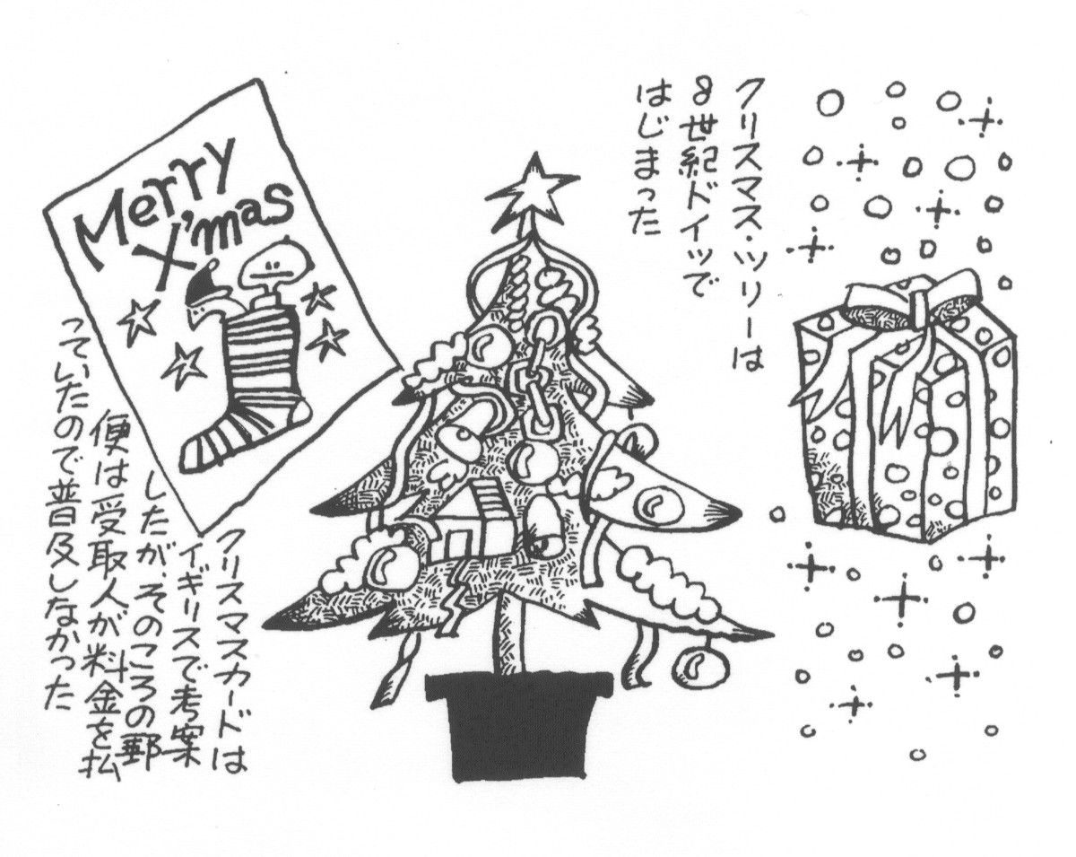 さらにクリスマス・カードは1846年イギリスで考案、ビクトリア女王がはじめて出したという説がありますが、記録では1843年ヘンリー・コルが考え出したというのが初見です。当時の郵便の料金は受取人が払う仕組みだったといい、クリスマス・カードは普及しなかったそうです。