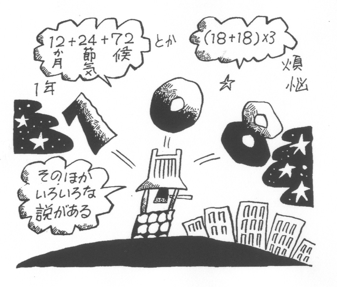 しかし108の鐘の音は、煩悩の数ではなく、1年の数を示したものだという説もあります。1年、12ヶ月、二十四節気、七十二候を足して108としたのだというものです。しかし、108の数についてはこのほかにもいろいろな説があります。