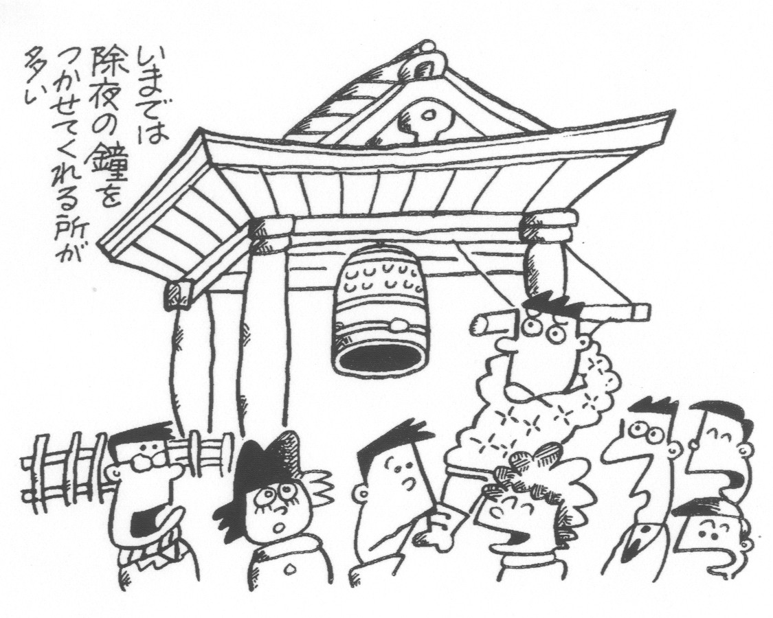 きょうは一年の最後の日大晦日(おおみそか)です。門松もかざり終わった、もちもついた、歳神さまのしめなわもつけた……正月の準備がととのったきょうは年越しそばを食べ、ミソカバライをし除夜の鐘を聞き、正月の神を待つ……というのは昔のはなし。いまはテレビで紅白歌合戦をみる者、海外旅行に行く者、またお寺で除夜の鐘をつくために行列をつくる者といろいろです。
