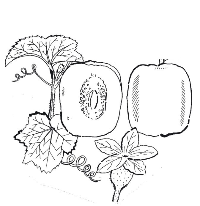 | (19)プリンスメロン(夏6月) メロンには、カンタループ系、フユ(冬)メロン、そしてアミ (網)メロンがあります。カンタループやアミメロンには、ジャ コウの香り(マスク)があります。アミメロンは多湿な日本では 路地では困難なため温室で栽培され、特にマスクメロンと呼んで います。 一方、第二次大戦後露地でも栽培できるようにいろいろなメロ ンを人工交配して研究。いまでは多くの露地メロンができていま す。そのうち、日本古代からあったマスクウリの系統がプリンス メロン。外来の露地メロンと、マクワウリの一系統との一代雑種 として育成、1962年(昭和37)に発表されました。 果皮が灰緑色でアミはなく、果肉や香りはマスクメロンとマク ワウリの中間で、甘く、病気に強く豊産種。露地でも栽培できる というので、いままで人気のあった金甜瓜(きんまくわうり)の スイートメロンにとって代わりました。 メロンは、もともとウリの仲間が変化してできたもの。簡単に 交雑してしまい、いまでは純粋なものは少ない。メロンには他に 輸入酒ハニーデュー、キャサバ、奈良で育成したスペインメロン、 北海道の夕張キング、コサック、アンデス、アムス、ふかみどり、 キンショウ、シラユキなどの品種があります。 ・ウリ科キュウリ属のつる性1年草