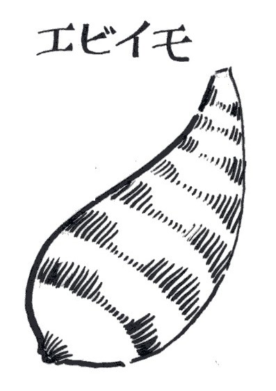 エビのように曲がっているのでエビイモの名があります。