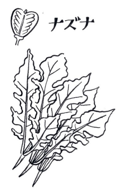 | ▼(13)ナズナ(冬1月) 中国野菜のナズナは、タンパク質や糖分も多く、ビタミンA・ B・C・Pに富み、栄養価も高い。これは日本でもおなじみ、春 の七草に利用されるナズナで、野生種を改良したものだという。 料理方法はほうれん草と同じ利用法で、風味を生かして和え物、 肉や野菜と炒めてもよく、細かく刻んで餃子の具にも利用されま す。 品種には、板葉薺菜と散葉薺菜があります。板葉薺菜は大場薺 菜とも呼び、葉片が大きくて厚く、羽状深裂で葉の縁のギザギザ が浅く、浅緑色。耐寒性、耐暑性は強い方です。品質、味ともに よい。 散葉薺菜は細葉薺菜とも呼び、葉が短小で薄く、羽状全裂で葉 縁の切れ込みは深く色は緑色。収量は板葉種に比べやや落ちるが 品質優良で香気が強く、味がきわめて良いそうです。 春まき、夏まき、秋まきがあり、秋まきは9月上旬から下旬に かけて播種し、10月ごろから翌年の3月まで収穫できます。 ・アブラナ科ナズナ属の越年草
