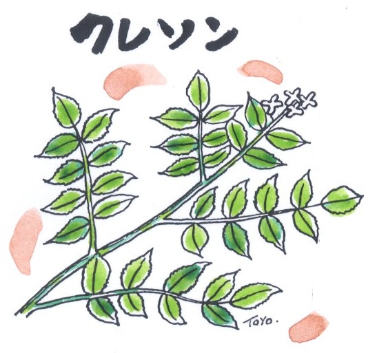 クレソンの茎葉はピリッとした辛みと芳香(ダイコンやワサビ