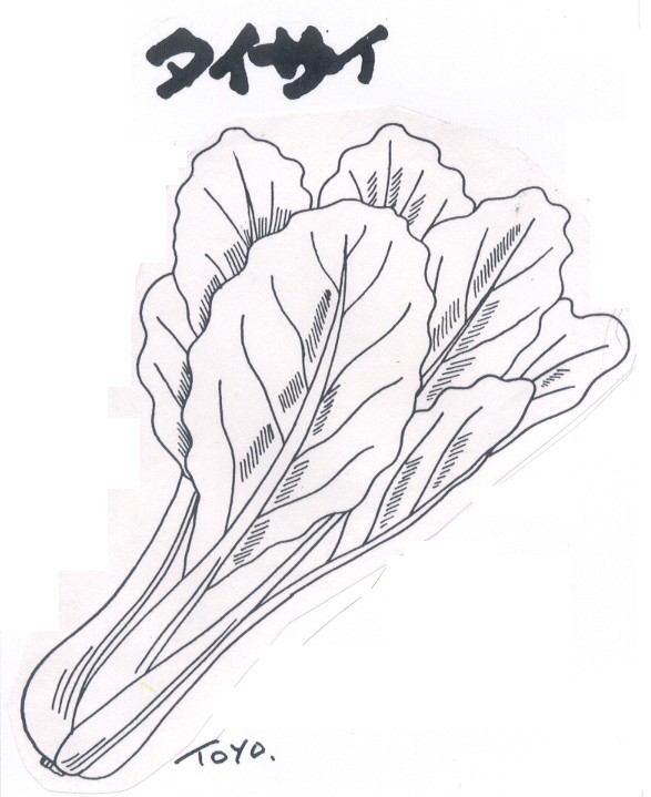 | ▼(10)タイサイ(冬2月) タイサイは漢字で体菜。テイサイ(体裁)ではありません。タ イナ、シャクナ、ホテイナともいいます。シャクナとは、葉身が へこんでいて、長い葉柄をもっており、まるで杓子のようだから という。ネコもシャクシも...の杓子なのであります。 また、葉柄のだき合っている様子が、「七福神」の1人、布袋 (ほてい)さまの大きなお腹のようなので、ホテイナというのだ そうです。 タイサイは中国原産。揚子江の一帯に栽培されていたものを、 明治8年(1875)サントウ(山東)ハクサイとともに導入。 東京付近に多く作られました。もとの中国にはたくさんの品種が あるといいます。 中国から伝ぱしたといっても、原地では体菜といっているわけ ではなく、華中では白菜の字をあてているが、華北の白菜とはち がうといいます。アメリカやイギリスではこれをパクチョイと呼 んでおり、白菜から軟化しただろうといわれています。 明治37年(1904)、南支から同系の品種、長柄白菜を輸入。 沖津の園芸試験場で試作したうえ、各地にその種子を配布しまし た。大正15年(1916)ごろ、渡橋の種子屋さんが、これを 「白茎体菜」と命名して売り出し、一般に広まったという。 タイサイは、ハクサイ、コマツナ、ミズナなど漬け菜とよく交 雑し、気候や土質を選ばず、寒さにも暑さにも強く、移植も簡単。 主に漬けものにされ、漬け減りも少なく、緑色があせないとくる からみんなに喜ばれ利用されました。 品種は、白茎体菜のほか雪白体菜などがあり、かつて、結球ハ クサイが普及する以前は、日本の漬け菜生産の首位にあったとい う。高さ30〜40センチになり、濃緑さじ形で無毛の根生葉。 花は淡黄色で総状花序。4〜6センチの細長い果実ができます。 【効能】浄血、利尿、便秘 アブラナ科アブラナ属の1、2年草