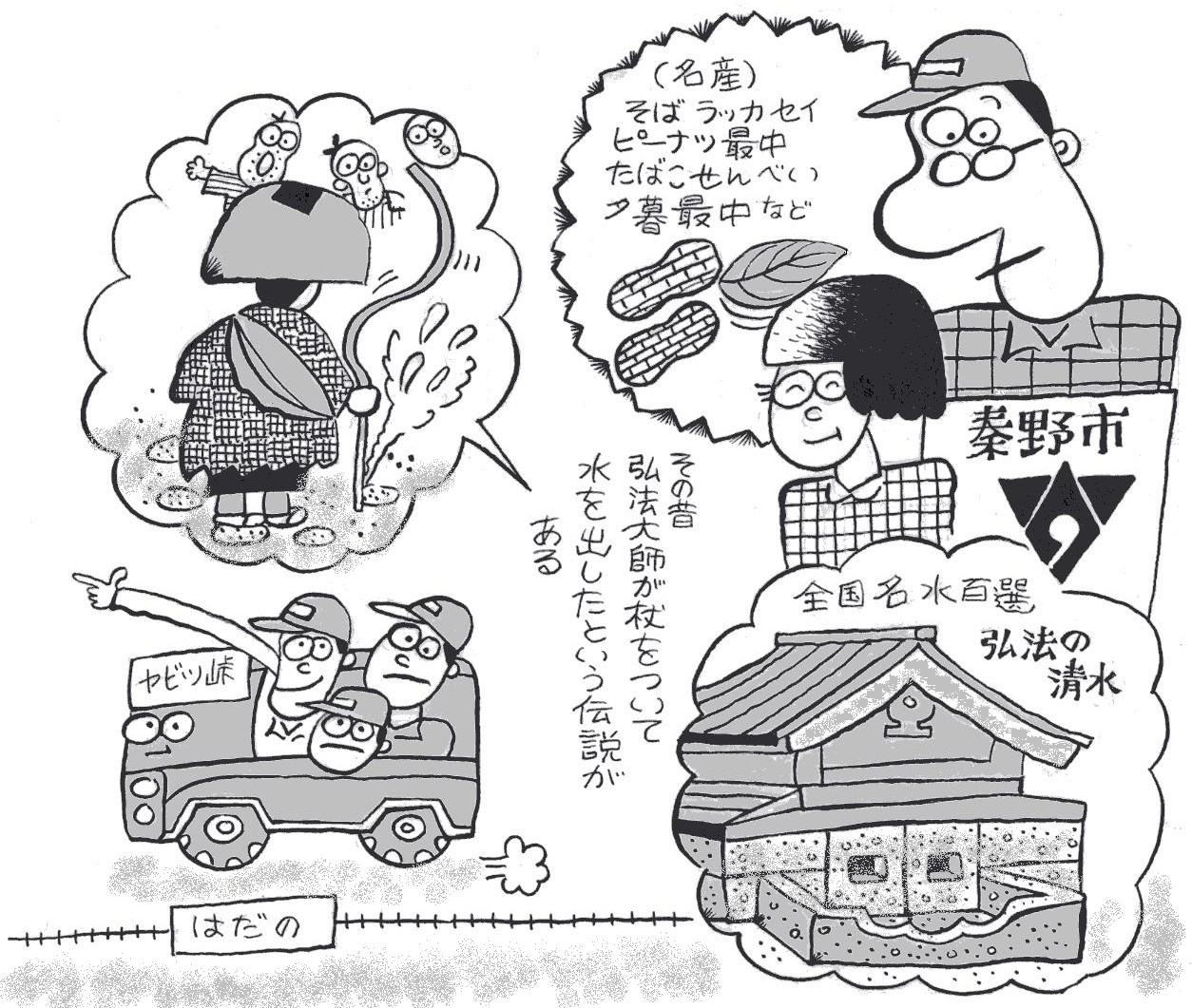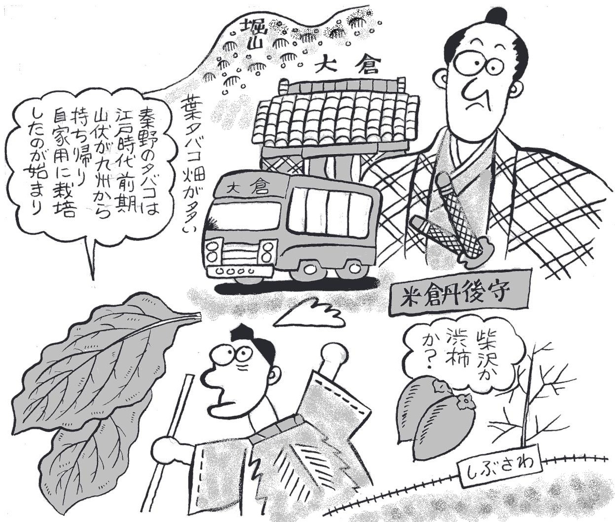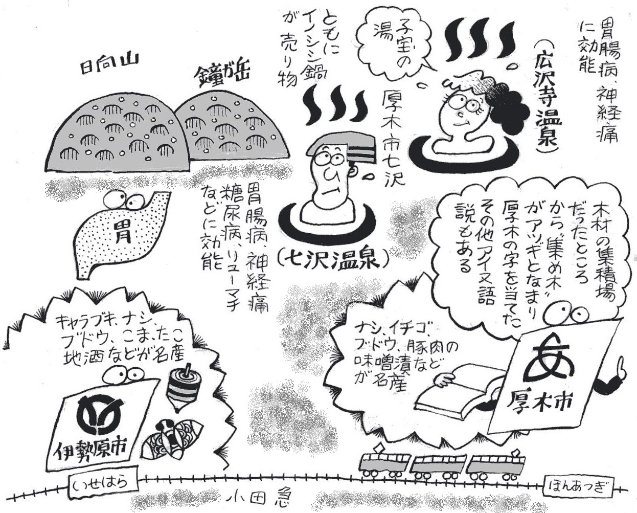 | ■(2)表尾根登山口 いつもにぎやかな表尾根。シーズン中はヤビツ峠までバスが入り、 たくさんのハイカーを運びます。その最寄り駅が秦野駅です。 秦野も古い地名。すでに平安時代に「幡多野郷」の名で、相模国 余綾(よろき)郡七郷の一つ記録があるとか。その後、この幡多野 郷を中心に荘園化し、「波多野荘」ができます。 それを本領としていたのが代々の波多野氏。この部族は、いまの 蓑毛の南側、寺山あたりに居を構え、そのルーツは藤原経範といい、 平将門を討った藤原秀郷の子孫だと伝えます。 この波多野荘に属する村々は、蓑毛、小蓑毛、寺山、菩提、堀山 下、渋沢など23ヵ村で、江戸後期の天保六年(1835)の渋沢 村、横野村の地誌書上帳には「波多野荘」「秦野荘」と書かれてい るそうです。 明治になって小田原県、佐倉県など、あっちこっちに属しました が、明治22年(1889)の市制町村制によって大住郡秦野町に なり、昭和30年、町村合併でいまの秦野市になったということで す。 一日一往復のヤビツ峠へのバスが利用できるない時、登山口にな るのが蓑毛です。大山登山口でもある蓑毛にはこんな伝説がありま す。 その昔、日本武尊が足柄峠を越えてこの地を訪れました。ある日、 地域の様子を調べようと大山に登ったところ、突然の雷雨にみまわ れました。 尊の身を案じた村人は、大急ぎで新しいワラで蓑と笠をつくり、 迎えに行きました。喜んだ尊は「以後、この郷をミノゲというべし」 といったのが地名の起こりというもの。 蓑毛が初めて文献に出てくるのは「吾妻鏡」。平安末期の養和元 年(1181)、平井紀六が工藤景光によって「相模国蓑毛辺」で 生け捕られたというものです・ 室町時代には大山寺護摩堂の造営料所となっています。また、バ ス停近くの大日堂境内の地蔵堂には、愛甲郡愛川町八菅山来山した 役小角(えんのおづぬ)が、開眼供養して空に投げた時、ここに落 下したという延命地蔵があります。 ミノゲの地名については、ミ(水)のクエ(崩壊地)がその語源 だという説もあります。ここは金目川の水源地帯、よく襲われたで あろう、山津波からきた名前だというわけです。 |