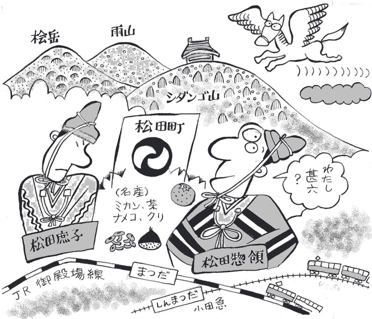| ■(4)雨山峠登山口 丹沢南部と西丹沢への登山者が電車を降りる小田急新松田駅とJ R御殿場線松田駅。箱根の明神ヶ岳、、明星ヶ岳へ登る人たちも合 わさり、にぎわいます。 松田郷の名も古く、最初の記録はあの「吾妻鏡」治承四年(11 80)、源頼朝の挙兵に応じなかった波多野義経は、頼朝が自分に 追手を向けたのを知り、「松田郷」で自殺したというものです。 その長子有経は、一時、頼朝から松田郷を与えられた大庭景義に 預けられましたが、のちに松田氏を名乗り、鎌倉御家人の列に加え られるのだそうです。 駅前の松田惣領の地名は、この一族の惣領(跡取り)が管理した 所で、隣の松田庶子は、その庶子の所有した地なのだそうです。終 点寄は「やどろぎ」と読むのだそうです。 明治八年(1875)、近くの菅沼、弥勒寺、中山、土佐原、宇 津茂、大寺、出沢の七ヵ村が合併してできた村です。 この七ヵ村は、雨山から秦野峠、高松山へ続く山稜の東側にある というので、昔は東山家入七ヵ村と呼んでいました。 その中の弥勒寺地区に伝わるおはなしです。昔々、村の上空を白 馬がゆっくり飛んでいきます。驚いた村人が大勢であとをつけてい くと、白馬は村の北西にあるシダンゴ山にフワリと降り立ちました。 村人たちが息を切らせながら登ってみると、なんと白馬には後光 をさした弥勒菩薩(みろくぼさつ)が乗っているではありませんか。 村人は伏し拝み、、弥勒堂を建てて鎮守とし、名前も弥勒寺村にし たということです。 そんなはなしを聞いて、、ある秋、シダンゴ山に寄ってみました。 なだらかな山頂はカヤが茂り、手入れした中央広場に石の小祠がポ ツン。もしかして弥勒さまをまつってあるのかも。 なお、宇津茂の北側にある稲郷は、かつては弥勒寺村んの飛び地 だったそうです。このあたりの道路わきにあるアジサイは、色変わ りのめずらしい花。茎先を失敬し、大事に庭にさしてみましたが、 とうとうつきませんでした。 |