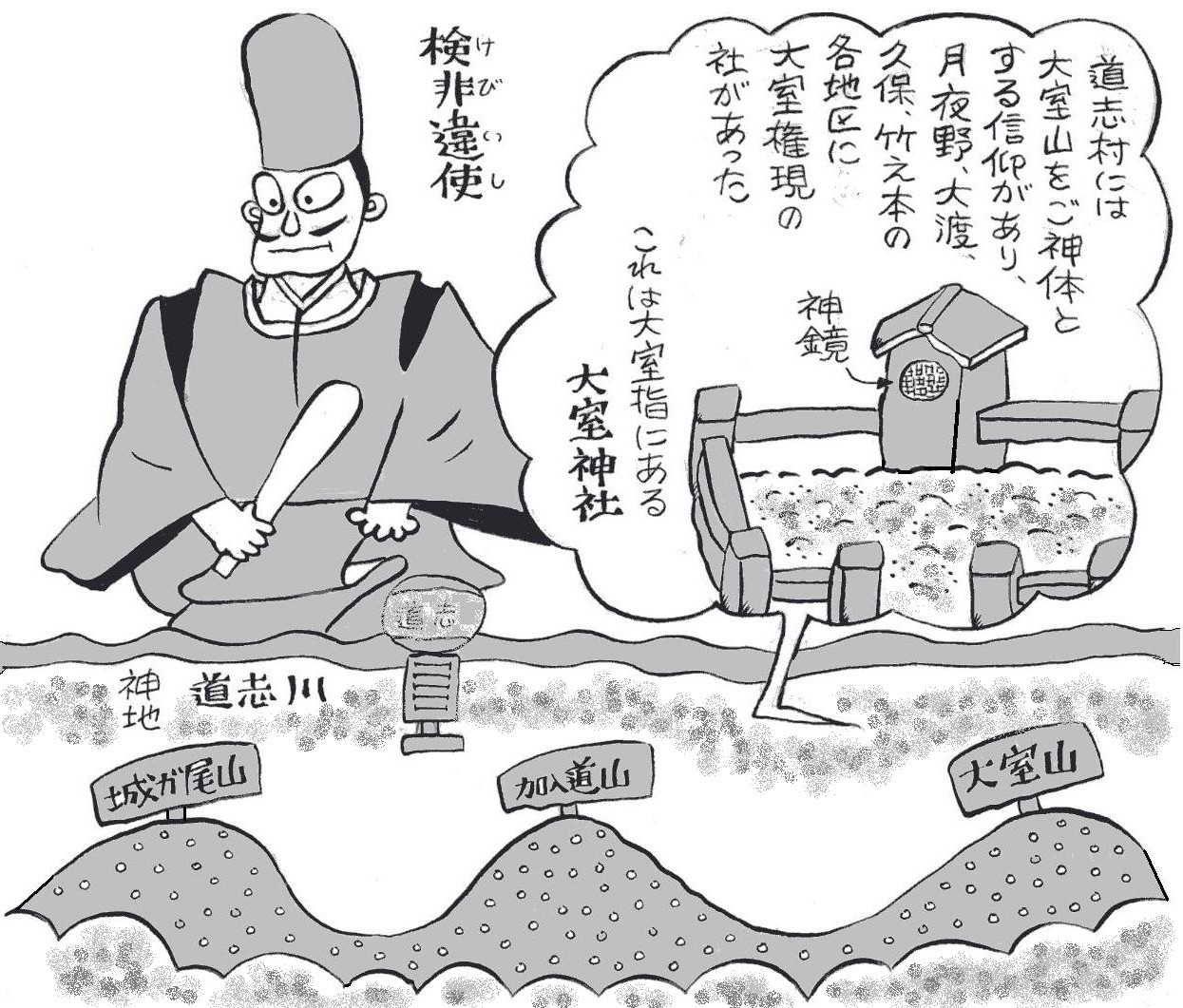 | ■(11)大室山周辺登山口 大室山、加入道山への入山口は、山梨県道志村です。道志川に沿 ってエンエンと26キロ(6里半)にも細長く、集落がちらばって いるため、「道志七里」といわれるそうです。 道志とは昔、明法道(法規や格式を教える所)の大学を卒業した 志(主典)を「道志」といい、倹非違使の下においたといいます。 倹非違使は、平安初期からあった役職で、都の治安を担当する検察 や警察のようなもの。 この制度がやがて地方にも適用され、ここを治めた倹非違使が土 着し、「道志」を名のったのがもとだろうといわれています。 その他おもしろい説を二、三。ここは渓谷に沿った集落であるこ とから、沢筋に道があったという。「沢通し」の転化説。なかには、 この村に入る古道が四つあったので「道四」なのだという説も。な るほどねエ。 道志村と山中湖村の境は山伏峠です。山伏峠にはこんなはなしが 残っています。 ある年、駿東郡村山の生国という山伏が道志川をさかのぼり、い ちばん上流の集落、白井平、長又にやってきました。 この山伏がなんとも手におえないワルで、人のものをかすめるわ、 村のオナゴに乱暴をするわ、あげくは放火ときます。しかし、腕っ ぷしが強いので村人は泣き寝入りです。 そんなある日、もう我慢はできないと白井平の水越一家と長谷の 一部が相談、手に手にくわやかま、こん棒を持って立ち上がりまし た。驚いたのは悪法院、こんなはずではと思いつつ、多勢には歯が たたずとみて、山中湖方面へと逃げ出します。 しかし、峠の頂上でついに追いつかれ、めった打ち。さすがのワ ルもついに息をひきとります。村人はなきがらを葬り、法院塚と名 づけ、ここを山伏峠と呼んだのだそうです。 きょうは正月の2日。菰釣避難小屋をあとに山伏峠に向かいます。 雲一つない空、山中湖とまっ白な富士山。家内が歓声をあげていま す。湖面の波が白く光っています。 ピークをいくつか越え、鉄塔のある天寿山から山伏峠へ。峠には 天寿神社の社がポツンと建っています。どれが伝説のワル山伏の法 院塚かわかるはずもなく、鞍部を越えて石割山に向かいました。 |