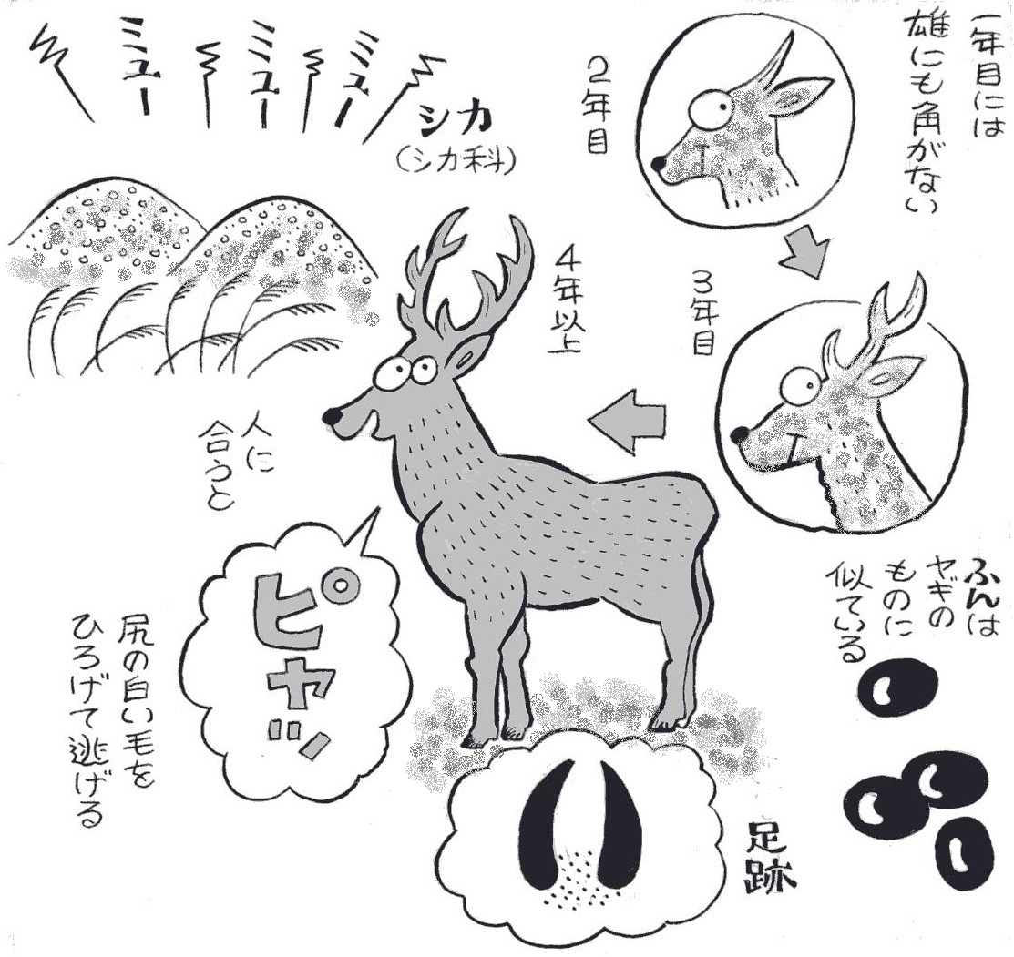 山の中で突然シカと出会います。「ピャッ」という声を出して飛