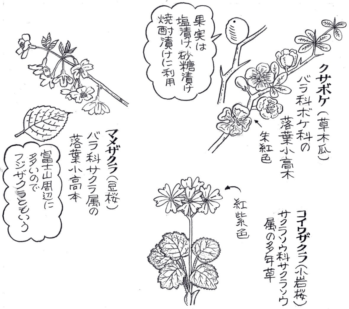 ・(14)早春から初夏に咲く花(キブシ、アセビ、クサボケ、コイワザクラ、