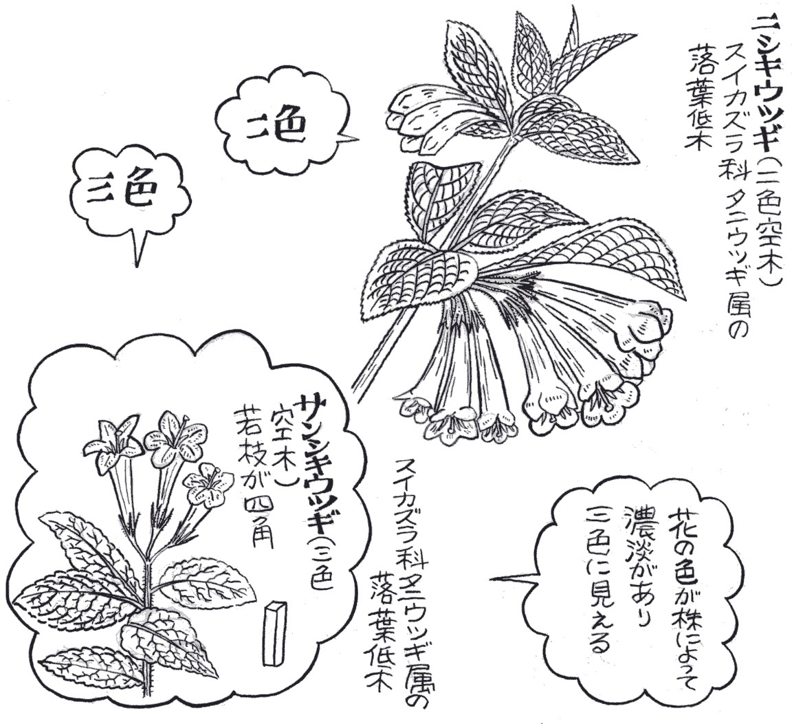 ・(16)ニシキウツギ、サンシキウツギ ・(17)イワカガミ、ヒメイワカガミ