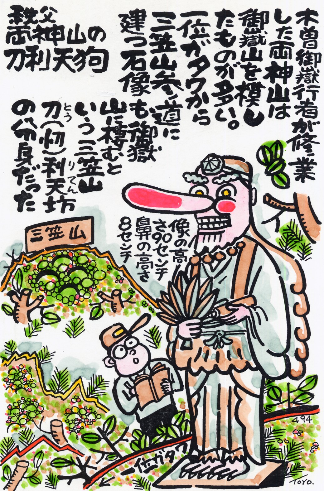 | ▼01:両神山・三笠山刀利天坊天狗 【略文】 両神山は江戸時代は木曽の御嶽教の行者で賑わった山。行者の唱え る唱文のなかに御嶽山と同じ天狗の名が出てくる。一位ガタワ方面 にある刀利天坊天狗の像は、木曽御嶽山飛騨頂上にある刀利天像と 姿形がよく似ている。 ・埼玉県小鹿野町と埼玉県秩父市との境 |