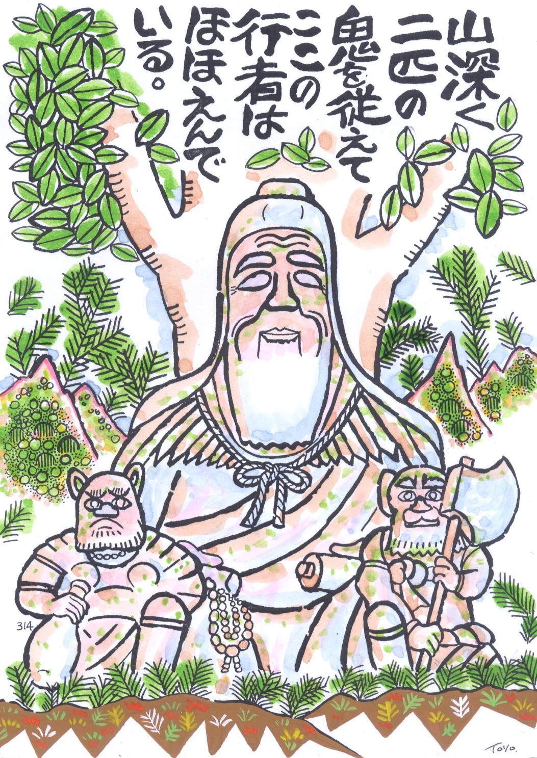 高さ約160センチ。行者さまはいつも前鬼、後鬼の2匹の鬼を従え