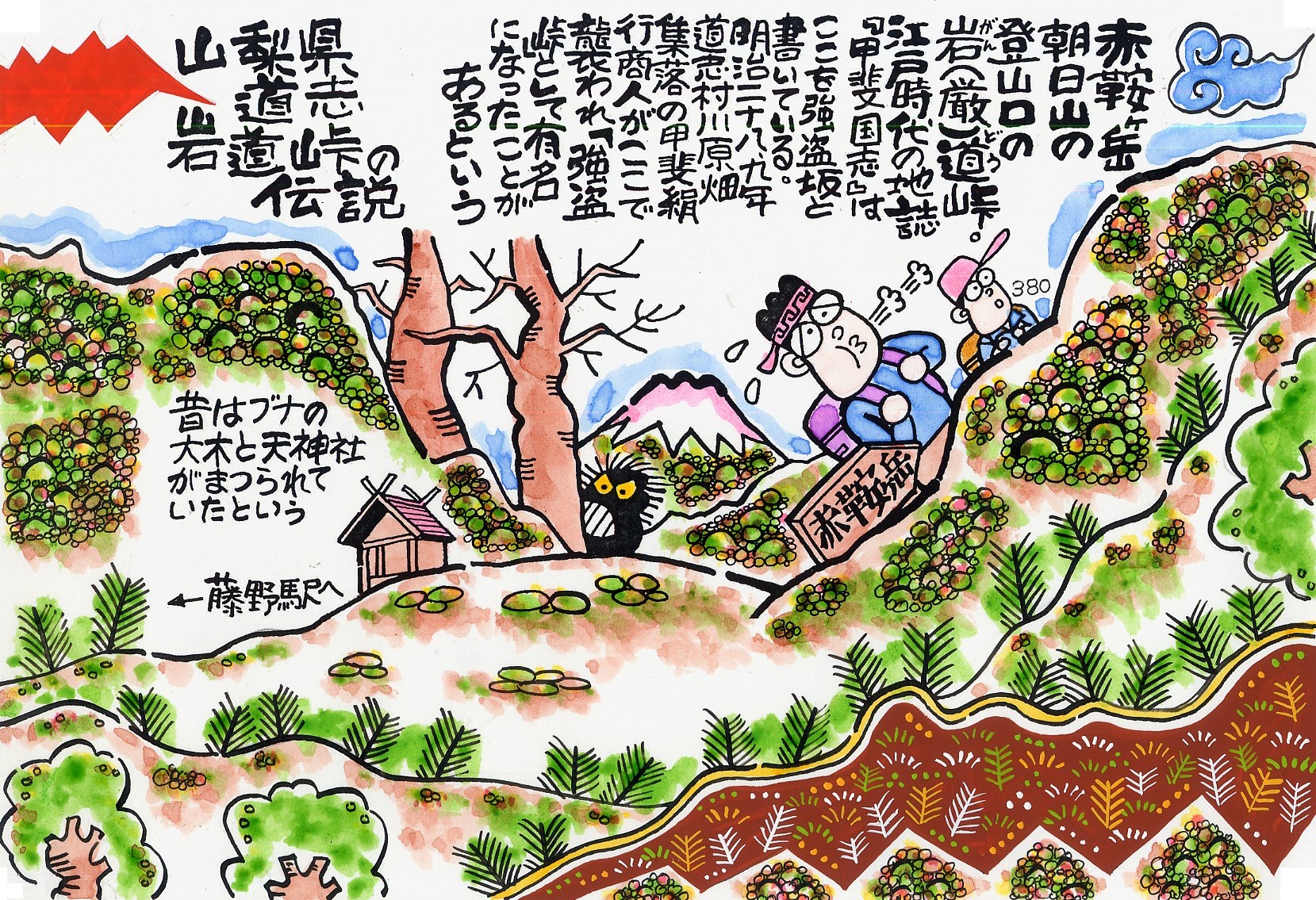 赤鞍岳、朝日山の登山口の岩(厳)道峠。江戸時代の地誌『甲斐国
