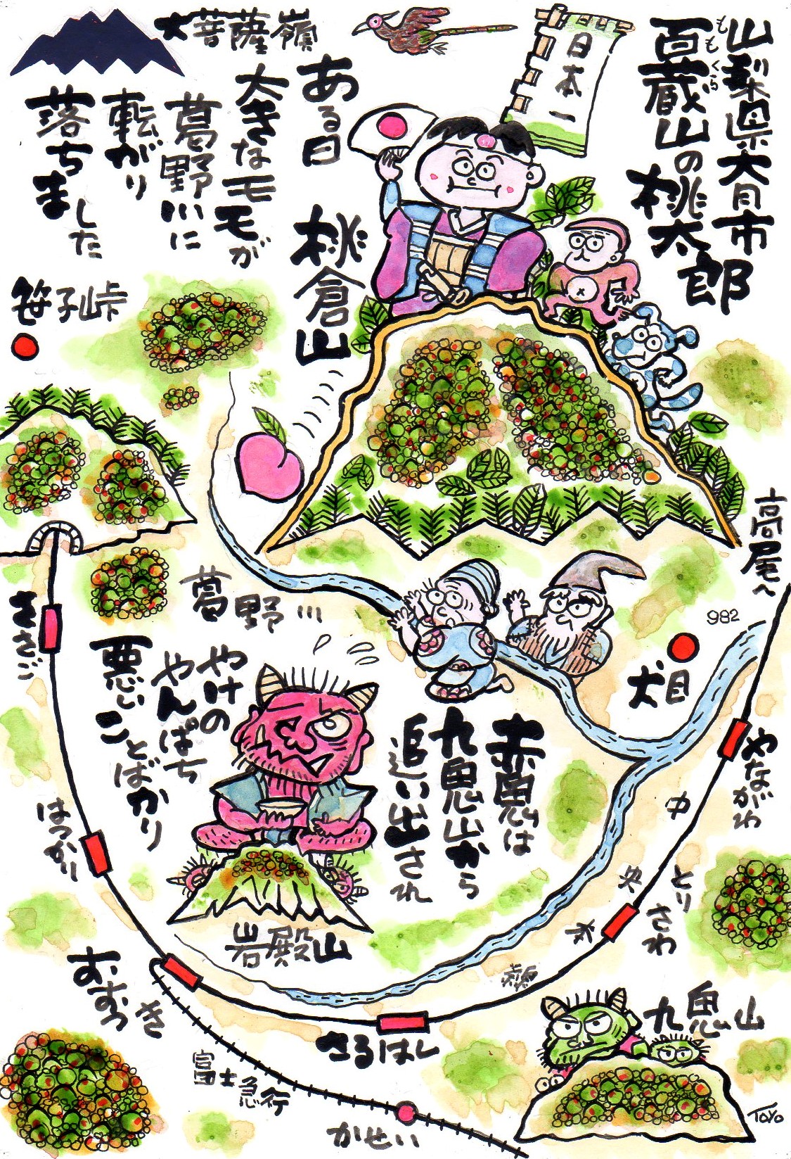 う歌があるそうです(『大月市の伝説と民話』)。こうして桃太郎は、