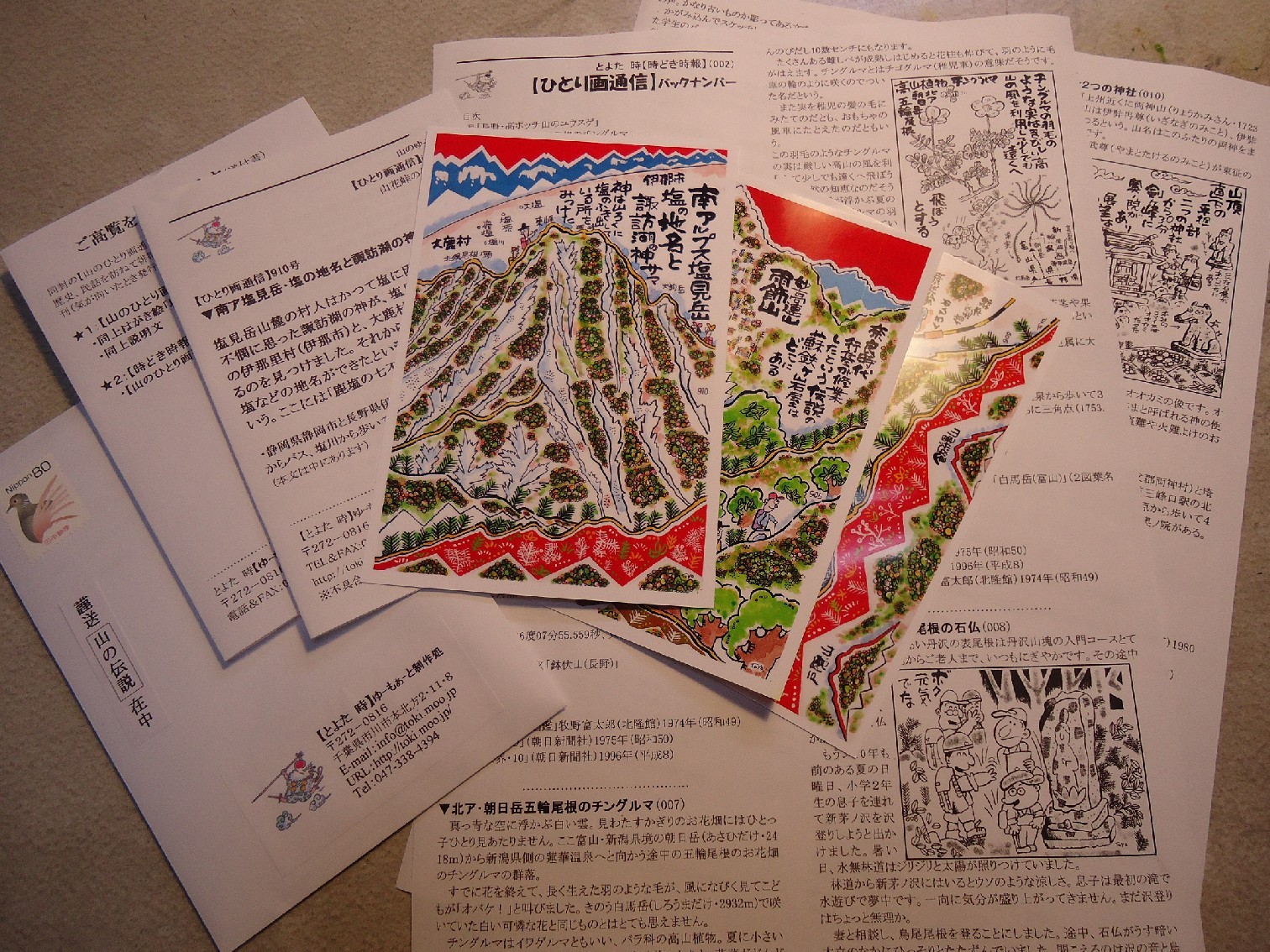 ◆毎月お送りする 山旅通信【ひとり画ってん】郵送見本(説明文つき)